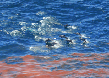 The potential destruction of planktons, seaweeds, lengths of coral and barrier reefs becomes a reality as insoluble elements of fossil fuel and dispersants settle to the ocean floor. Dispersed oil sticks on to anything and everything and is then mistaken by marine animals as food.